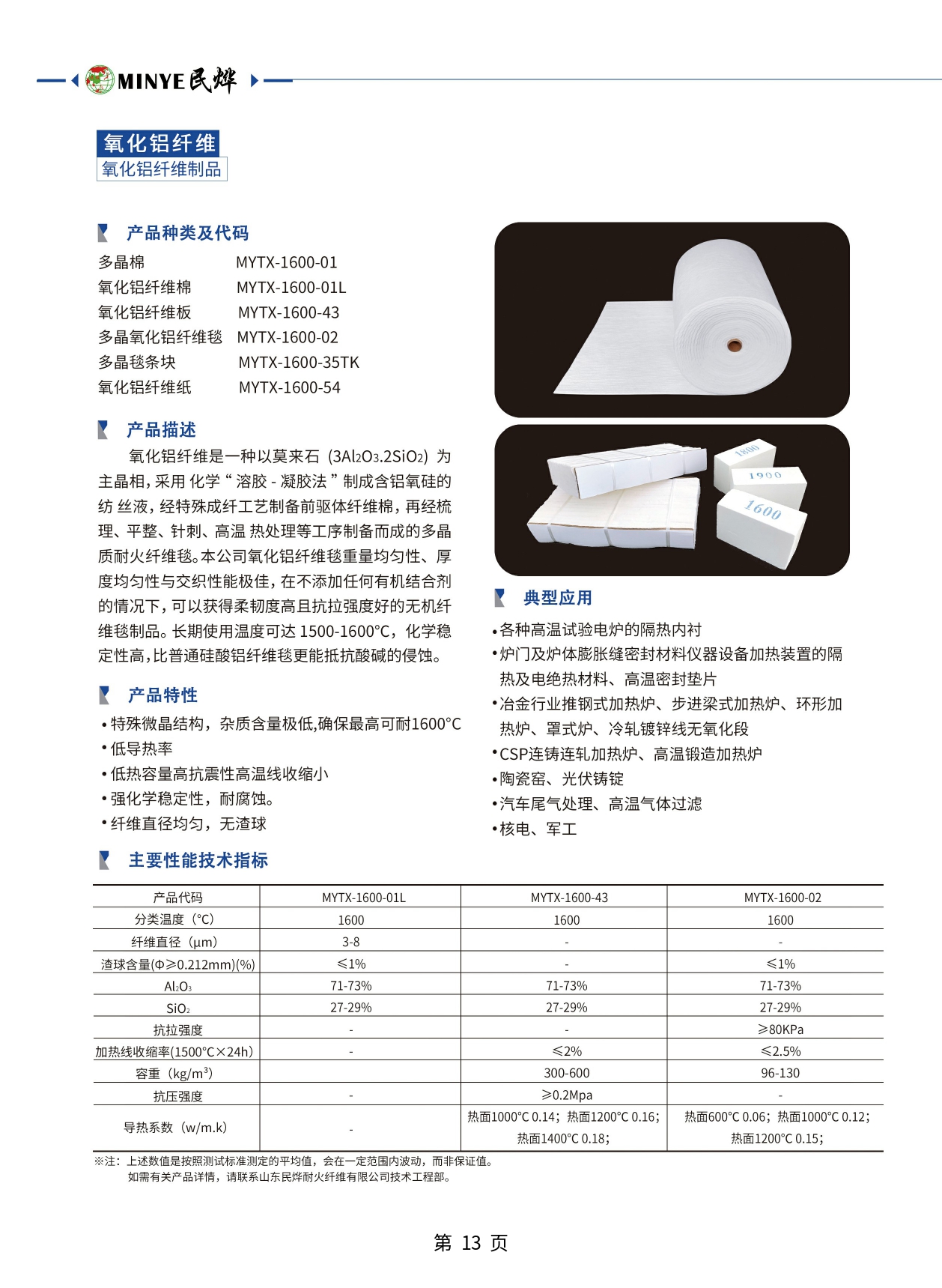 山東民燁耐火纖維有限公司是一家專業從事陶瓷纖維材料的研制開發、生產經營及施工于一體的股份制企業,主要產品有:硅酸鋁纖維棉硅酸鋁纖維模塊硅酸鋁纖維紙硅酸鋁纖維異形件硅酸鋁纖維氈硅酸鋁纖維繩硅酸鋁纖維板硅酸鋁纖維毯等,產品暢銷全國,深受用戶好評。了解最新產品報價可以聯系我們網站 http://m.rolfperrin.com/上電話,我們會第一時間跟您聯系。
